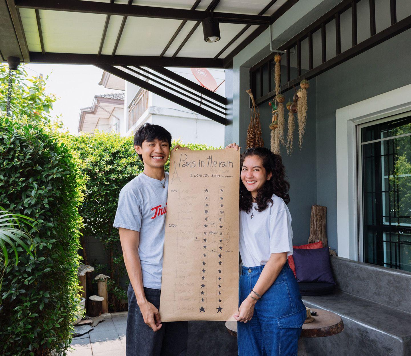 “จำได้ว่าหลังจากตกลงคบกันเดือนแรก เขาก็ชวนวางแผนไปเที่ยวฝรั่งเศสแบบจริงจัง เราตั้งงบฯ ไว้หนึ่งแสนน่าจะพอ แล้วค่อยคำนวณออกมาว่าควรใช้เวลาเก็บเงินกี่เดือน เอาที่เราทั้งคู่ไหว เพราะตอนนั้นต่างคนต่างเพิ่งเริ่มทำงาน คุยกันเสร็จ ก็รีบไปซื้อกระดาษมาช่วยกันวาดตารางเก็บเงินคนละ 3,000 บาท นาน 17 เดือน”