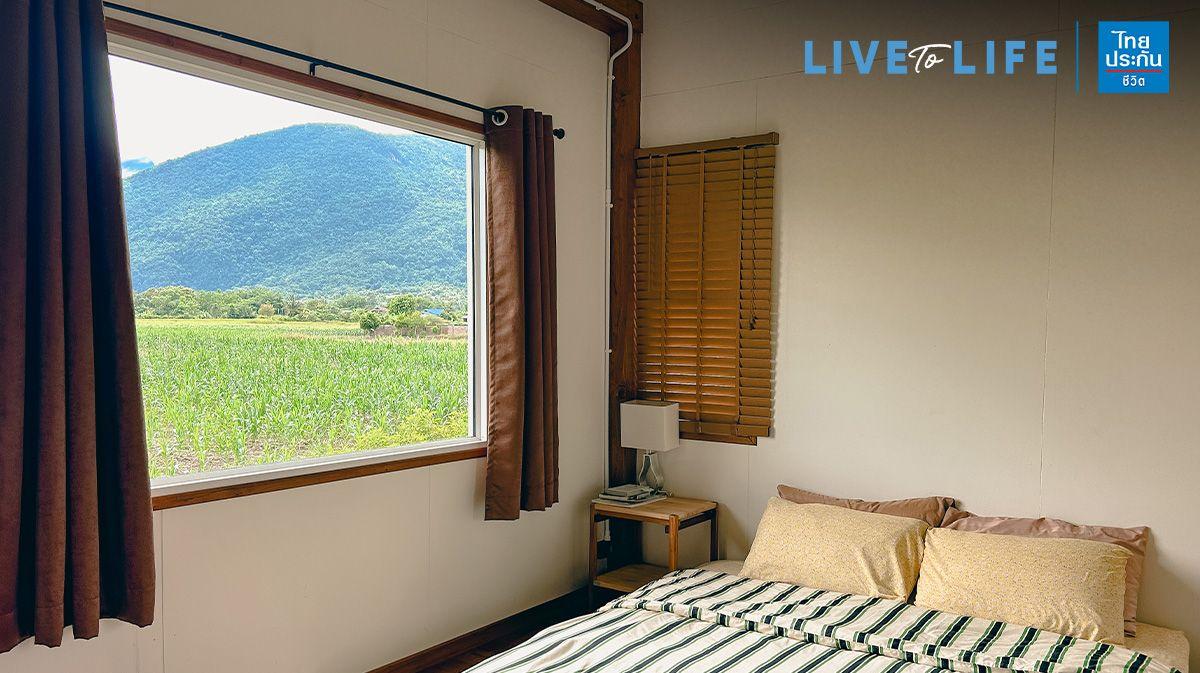วิวจากกระจกในห้องมองเห็นทุ่งนากว้างสุดลูกหูลูกตา ภูเขาที่อยู่ถัดไปคือดอยสามหมื่นและดอยหลวงเชียงดาว หน้าฝนครึ้มทั้งวันจนแทบไม่มีเห็นพระอาทิตย์ ยังไม่ถึงหนึ่งทุ่มฟ้าก็มืดสนิท โดยรอบก็เงียบสงัด มีเพียงเสียงจิ้งหรีดที่ส่งเข้านอน