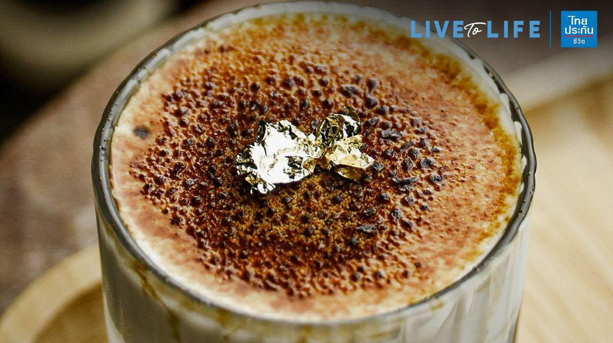 คอกาแฟต้องชื่นชอบเพราะมีเมล็ดให้เลือกหลากหลาย แต่วันนี้ เมื่อเห็นชื่อ ‘น้ำถอดจิต’ ก็อดไม่ไหวต้องลองชิม ด้านล่างเป็นน้ำมะพร้าวสดชื่น เข้ากันดีกับครีมชีสละมุนด้านบน ขนมอบวันนี้เป็นสโคน แยม และคอทเทจครีม เคล้ากับเสียงน้ำฝนกระทบใบไม้