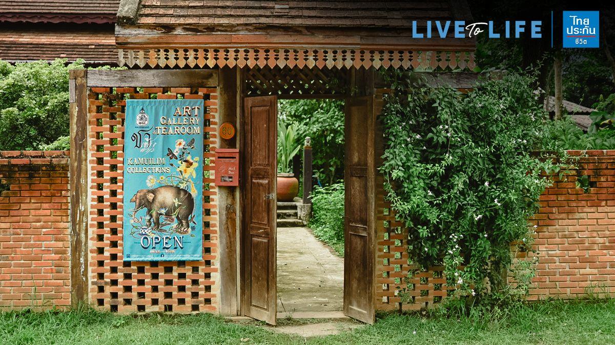 อาคารหลังนี้คือยุ้งข้าวเก่าแก่ที่นำมาดัดแปลงให้เป็นแกลเลอรี มีเฟอร์นิเจอร์จักสาน ไว้ให้นั่งจิบชายามบ่าย ผนังประดับด้วยงานเพนติ้งบนผ้าผืนใหญ่ ปลอกหมอน ผ้าปูโต๊ะ ล้วนเป็นภาพเขียนจากแบรนด์ Kamuilim ฝีมือคุณ ปรีชา ลิม จิตรกรนักวาดลายไทย มองไปมุมไหนก็เพลินตา แบบไม่น่าเชื่อว่าจะมีสถานที่แบบนี้ในหมู่บ้านที่โอบล้อมด้วยภูเขาและท้องทุ่งนา