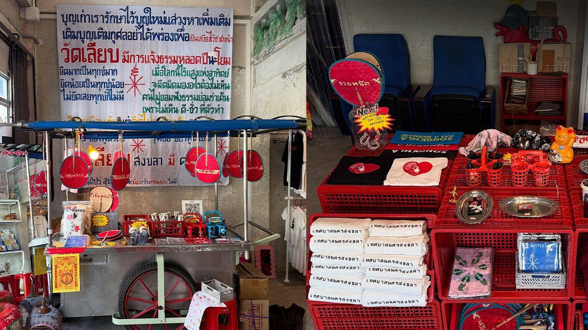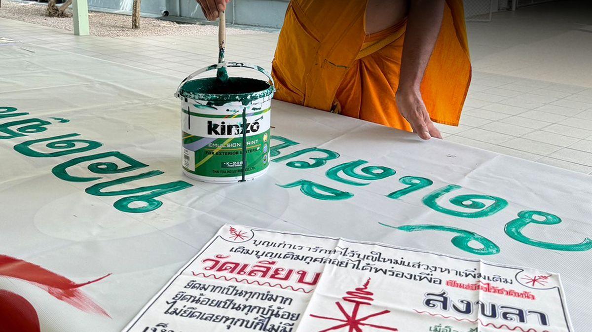 “วัดเลียบเป็นวัดที่ใช้คำภาษาใต้สื่อสารกับญาติโยมที่มาทำบุญ เจ้าอาวาสท่านจับพู่กันเขียนป้ายด้วยตัวเอง เน้นใช้คำสั้น กระชับ เข้าใจง่าย ได้ใจความ ผมเห็นแล้วเลยได้ไอเดียต่อยอดว่า ตัวเราเองก็คุ้นเคยกับภาษาใต้มาตลอด ถ้านำไปใส่ในงานศิลปะหรือของใช้สักชิ้น น่าจะออกมาสนุกและแฝงอารมณ์ขันแบบไทย ๆ”