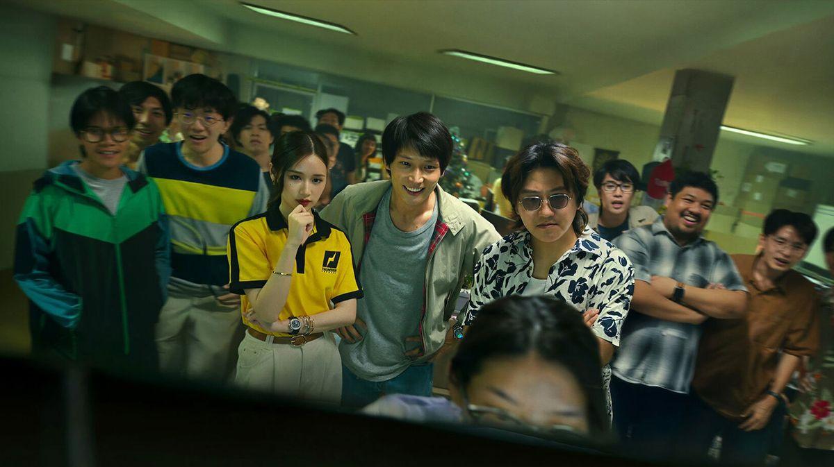 ทั้งสามคนไม่เคยทำหนังมาก่อน และไม่มีทีมงานคนอื่น ๆ ต่างจากคู่แข่งที่มีโปรดักชันยิ่งใหญ่ อุปกรณ์ครบครัน สามเพื่อนซี้จึงไปขอความช่วยเหลือจากเพื่อนร่วมห้อง มาทำหน้าที่ช่างไฟ ช่างเสียง ช่วยแสดงเป็นตัวประกอบ และได้ รินทาโร่ ชายหนุ่มผู้ข้ามเวลาจากอนาคตมาเป็นพระเอกของเรื่อง