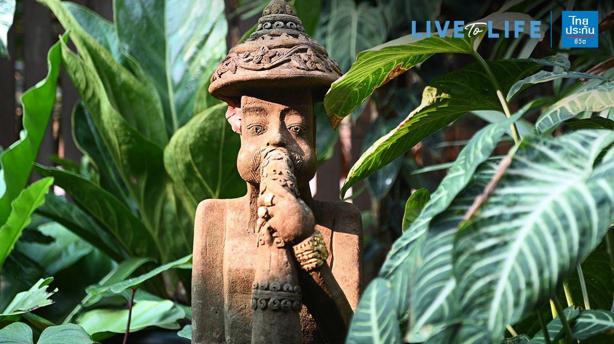 ความร่มรื่นจาก ต้นไม้ใบเขียว ความสดชื่นจากสายน้ำและเสียงน้ำไหล รวมถึงพลังความศรัทธาจากบรรดา รูปเคารพที่กลมกลืนเป็นหนึ่งเดียวกับธรรมชาติในสวน จึงเป็นองค์ประกอบที่ชวนผ่อนคลาย และเป็นความคุ้นเคยที่คนไทยเองก็คุ้นชิน